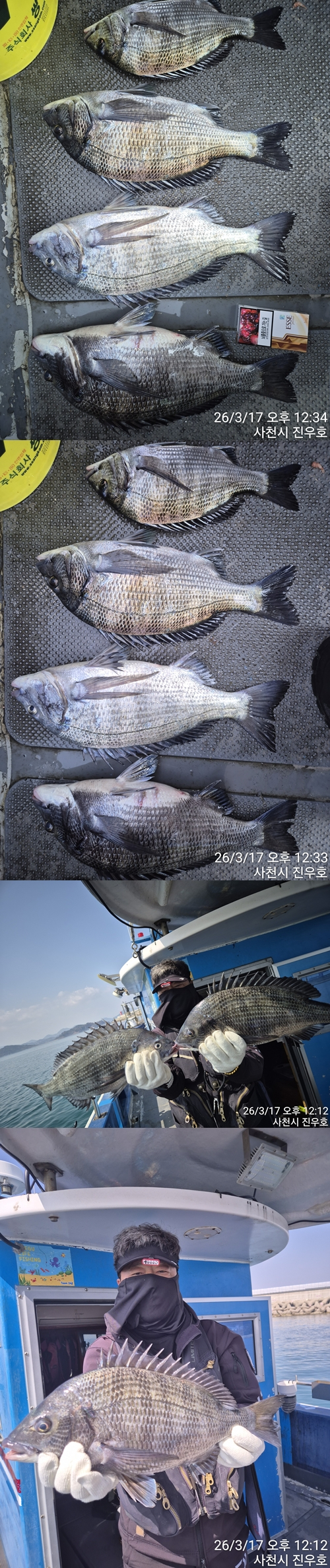 ![]() 17일 감성돔 출조 다녀온 조황 입니다. 한분 5짜같은 힘으로 감성돔 손맛 찐~~하게 보고 왔습니다 ~^^ 47짜, 46짜, 32짜로 마무리, 내일도 출항 합니다! 예약 받습니다 :) 안녕하세요 진우피싱 선장 입니다 •‿• 갑오징어, 쭈꾸미, 돌문어, 감성돔, 생활낚시 전문 배낚시입니다. ** 5시 30분 까지 도착 , 6시 출항 합니다 ** ෆ 3월 한달간 감성돔 출조 합니다 ෆ ෆ 선상24 예약이 어려우신 분은 진우피싱 선장에게 전화 주시면 예약 도와드리겠습니다, 편하게 전화 주세요 ෆ ෆ 점심식사 도시락 제공합니다 ෆ ෆ 초보자도 대환영 입니다 ෆ 남녀 누구나 안전하고 편하게 낚시 할수있도록 진우피싱이 새롭게 단장했습니다 •‿• (깨끗한 수세식 화장실 완비) * 쭈꾸미 봉돌 8호 ~ 10호 까지 준비하시면 됩니다. * 한번 맺은 인연을 소중히 여겨 한분 한분 정성과 신뢰로 모시겠습니다. * 진우피싱을 믿고 찾아주시면 친절히 모시겠습니다. * 초보자도 쉽게 잡을 수 있도록 도와드립니다 ㅎㅎ 걱정하지 마시고 오세요 ~~ * 싱싱하게 살려갈 수 있는 해수펌프 설치되어 있습니다 •‿• * 낚시대 & 릴 무상대여 해드립니다 ~^^ * 비상약 ( 두통약, 소화제 ) 구비되어있습니다. ----------------------------------------------------------------------- ♡ 예약 & 출조 문의 ☎ (진우피싱 선장) 010 . 8687. 5278 ♡ 네비주소 : 사천시 팔포 3길 56-45번지 (동금동) 삼천포 팔포항 해양경찰 앞 ♡ 출조시간 : 평일 및 주말 -> 5시 30분 까지 도착 -> 6시 출항, 14시 전 후 철수 합니다! ♡ ' 진우피싱밴드 '에 초대합니다 → https://band.us/n/a0abX8YcR7bd5 * 밴드에 들어간 후 왼쪽 상단 돋보기 모양 클릭 → 진우피싱 검색 → 가입하기 * 밴드가입 시, 이름 / 살고있는 지역 / 출생년도 필수 기재 후 가입 가능합니다. (ex. 홍길동 / 경남 사천 / 71년생) ♡ 선상 낚시 안내 * 승선인원 : 12명 (선장포함) * 예약입금 계좌 : 농협 845084-56-005741 (예금주) 서명덕 * 선비 : 1인 7만원 (오전) * 독배 예약은 선장과 상의 후 결정하시길 바랍니다. ♡ 출조시 유의사항 * 구명조끼 필수 착용(미착용 시 벌금 부과) → 개인용이 없으신분들은 선내에 비치되어 있으니 걱정하지 않으셔도 됩니다. * 점심 도시락, 생수, 커피 제공 * 선내 음주 절대 금지 * 승선 시 신분증 필수 지참 *** 삼천포 진우피싱 예약 안내 *** 예약문의 : 010-8687-5278 오시는길 : 경남 사천시 팔포3길 56-45 |